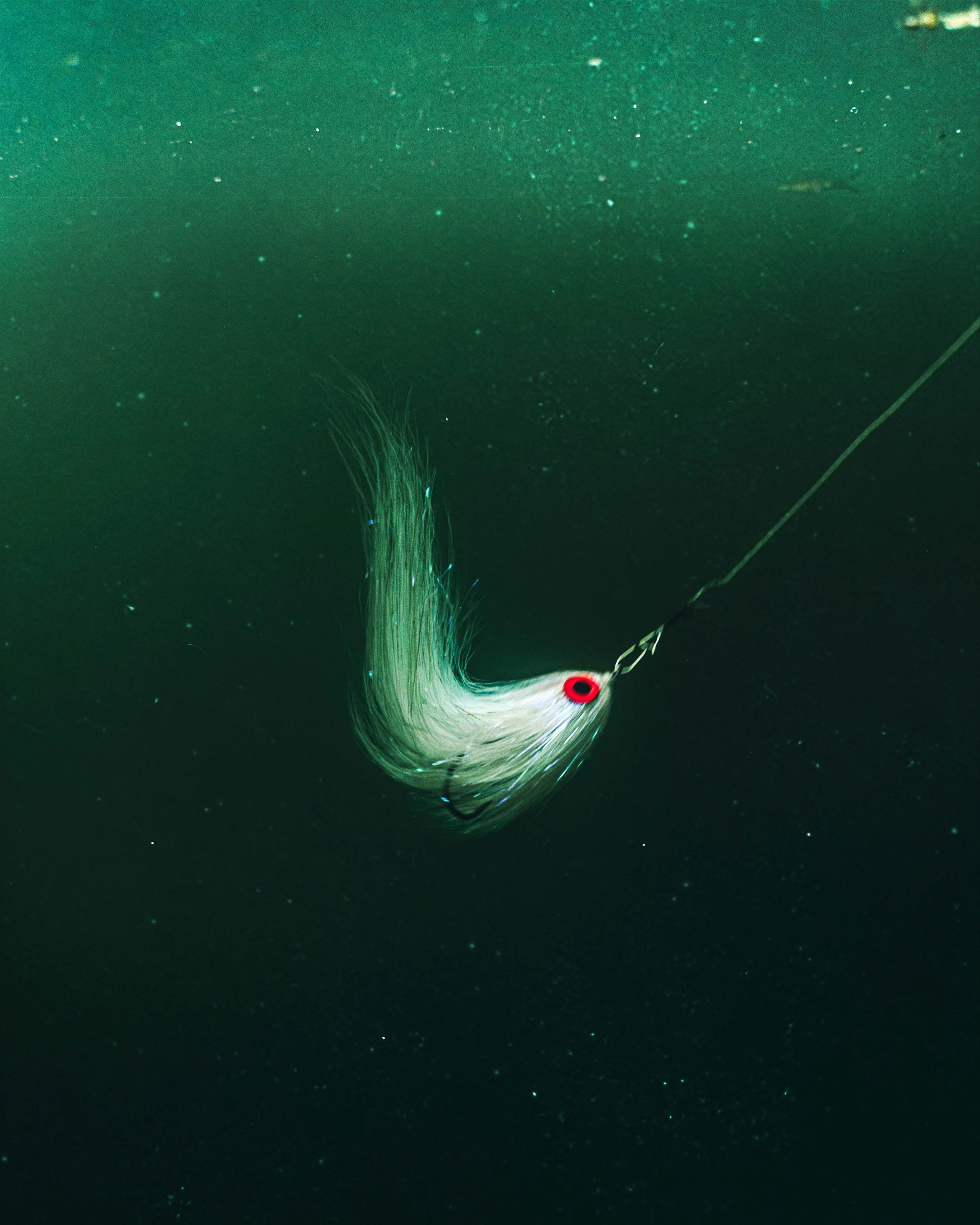 like a ghostly, battle-worn baitfish, it flashes in the water with an unnatural shimmer.